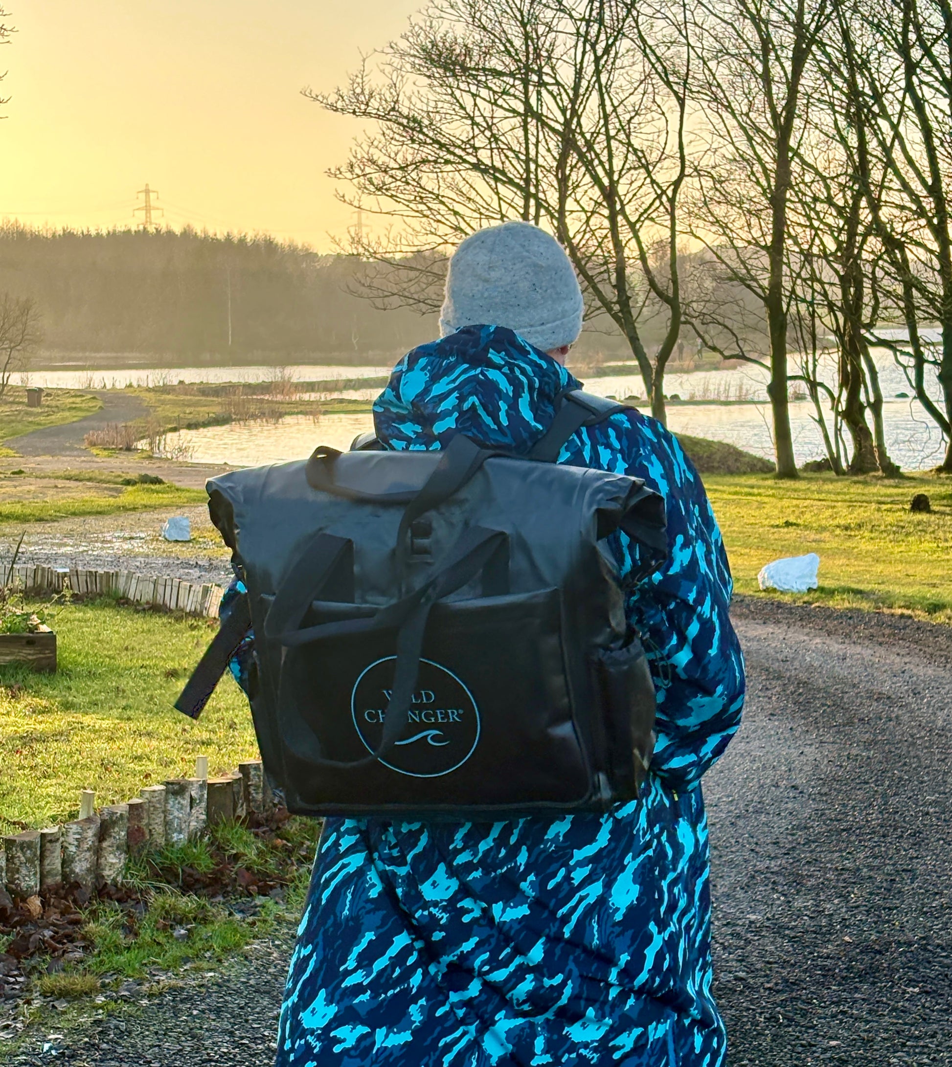The sleek black Wild Changer. Same features, same warmth, same clever design, just a more understated look. Waterproof, insulated and packed with pockets for a calmer, warmer post-swim change.